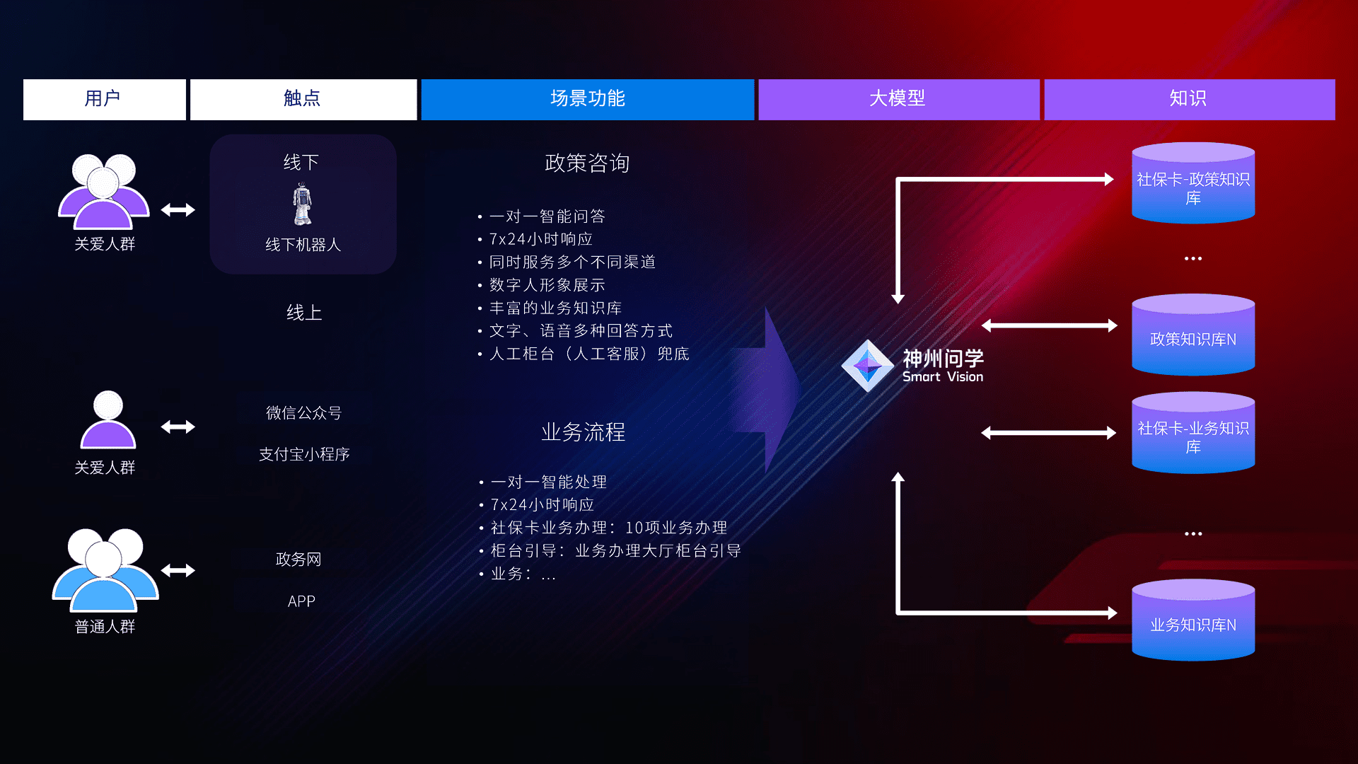 • 线上线下全覆盖:线上提供微信公众号、、、、支付宝小程序、、政务网、、、app多种渠道,,与线下机器人形成完整服务体系。。